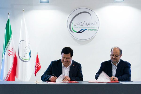 در جریان برگزارى همایش و نمایشگاه پتروکِم، دو تفاهمنامه راهبردى براى توسعه همکارى ها و پشتیبانى از صنعت استراتژیک پتروشیمى، به امضاى محمد شریعتمداری مدیرعامل شرکت صنایع پتروشیمی خلیج فارس و فرشید فرخ نژاد مدیرعامل بانک ملت رسید.
